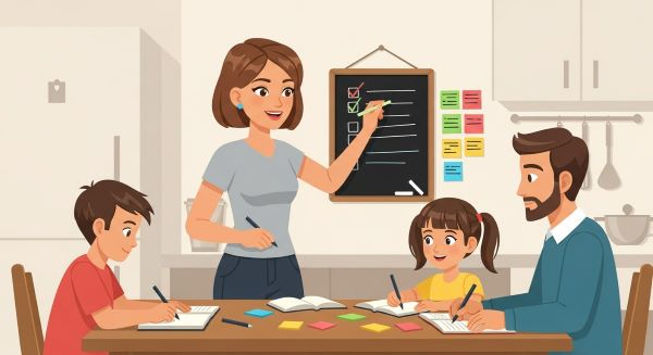 - Checklist físico: monte um quadro na cozinha ou na entrada da casa, com ícones divertidos para as tarefas (exemplo: 🛏️ = arrumar camas, 🗑️ = tirar lixo). Cada tarefa concluída ganha um check colorido ou um adesivo criativo.